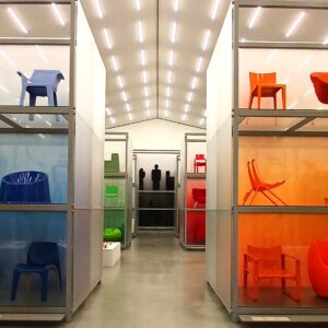 Over four decades the Vitra collection has grown to over 20,000 objects, 7000 of which are furniture. The collection includes the estate of Alexander Girard, Danish designer Verner Panton (including over 100 prototypes and versions his iconic S or Panton Chair) and the complete three-dimensional archive from the estate of American post-war designers Charles and Ray Eames. The aim of the collection is to document interiors, past and present, into a broader context of how we live today, and by doing so place design at the very core. The scale of the collection required a focussed direction, and a new building was conceived and opened in 2016 to house the complete archive and create a permanent display for the public.